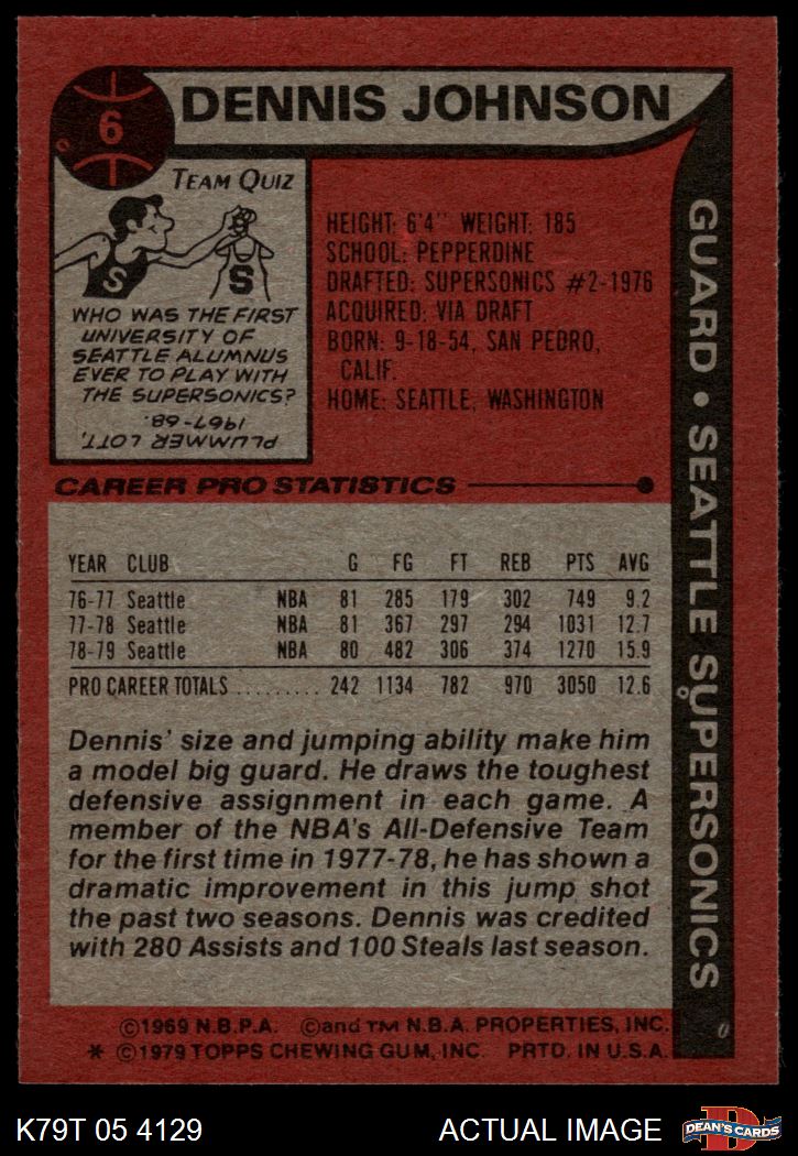 1979 Topps #6 Dennis Johnson 6 - EX/MT