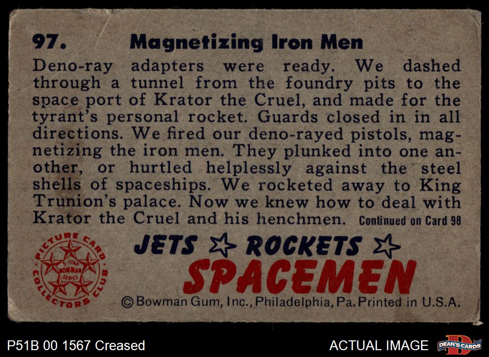 1951 Bowman Jets Rockets and Spacemen #97 Magnetizing Iron Men