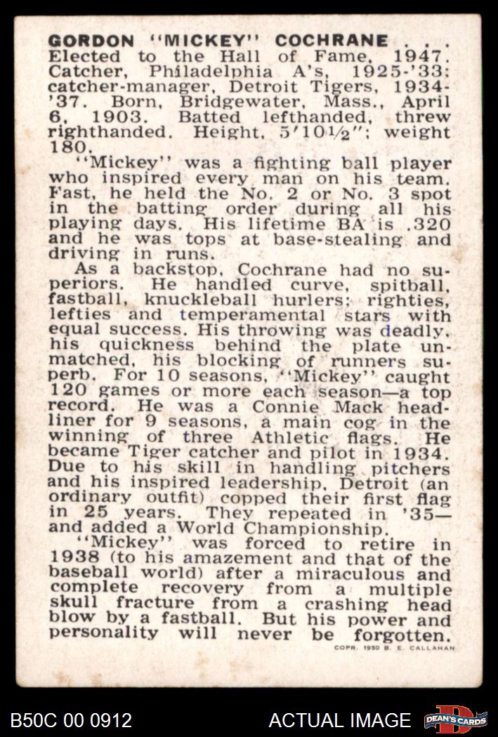 1950 Callahan Hall of Fame ERR Mickey Cochrane 3 - VG