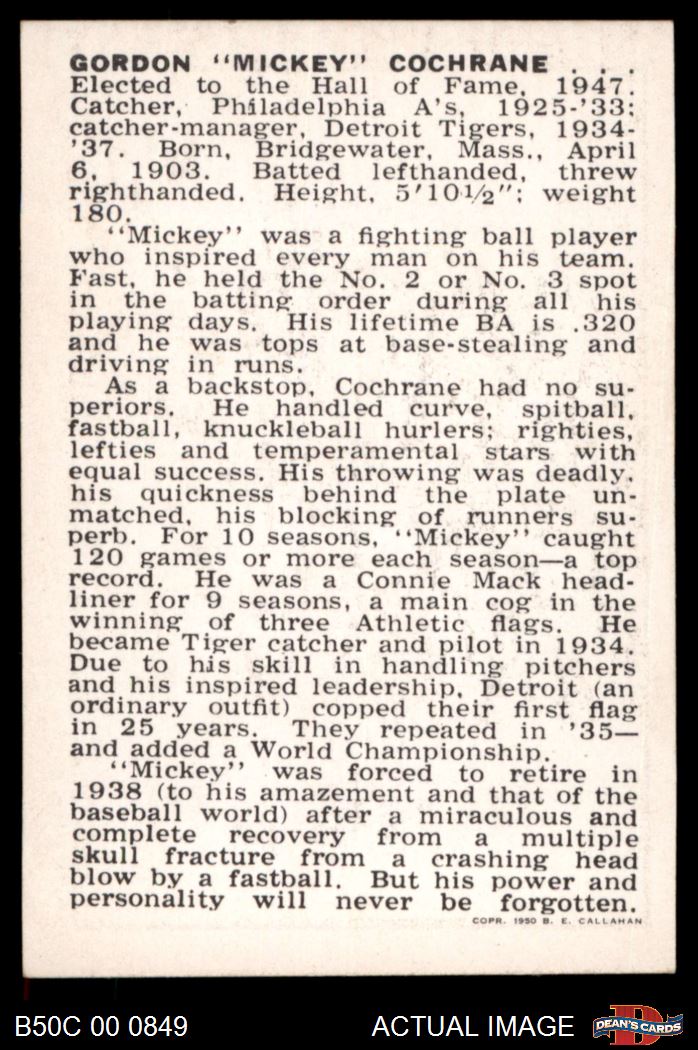 1950 Callahan Hall of Fame ERR Mickey Cochrane 7 - NM