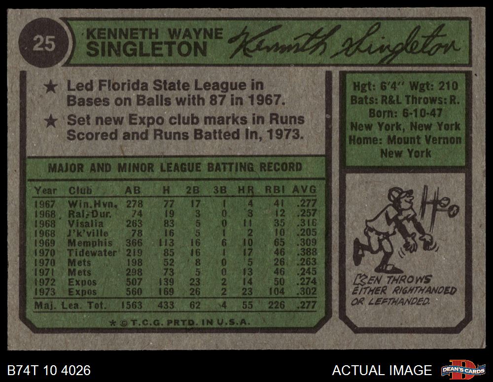 1974 Topps #25 Ken Singleton 6.5 - EX/MT+