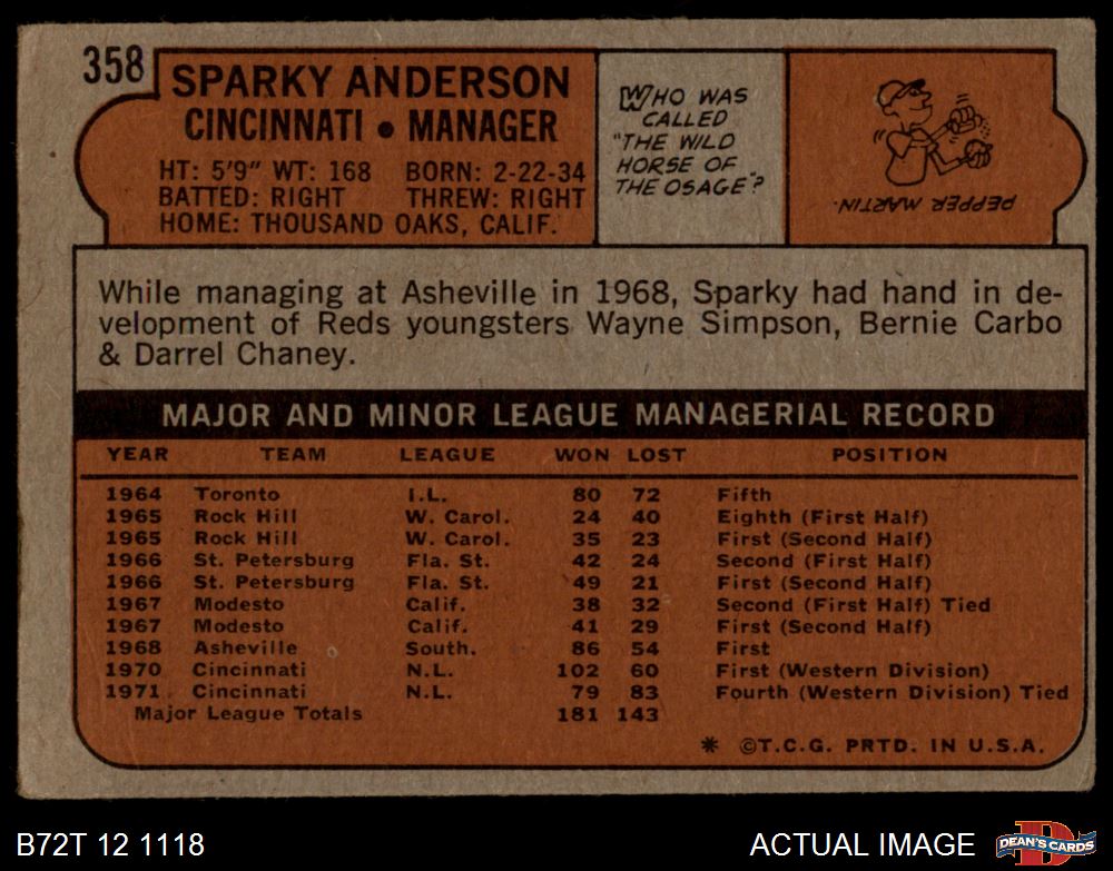 1972 Topps #358 Sparky Anderson 1 - POOR