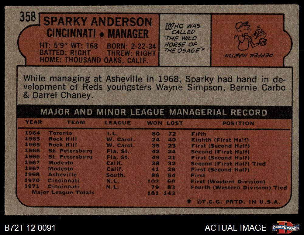 1972 Topps #358 Sparky Anderson 4 - VG/EX