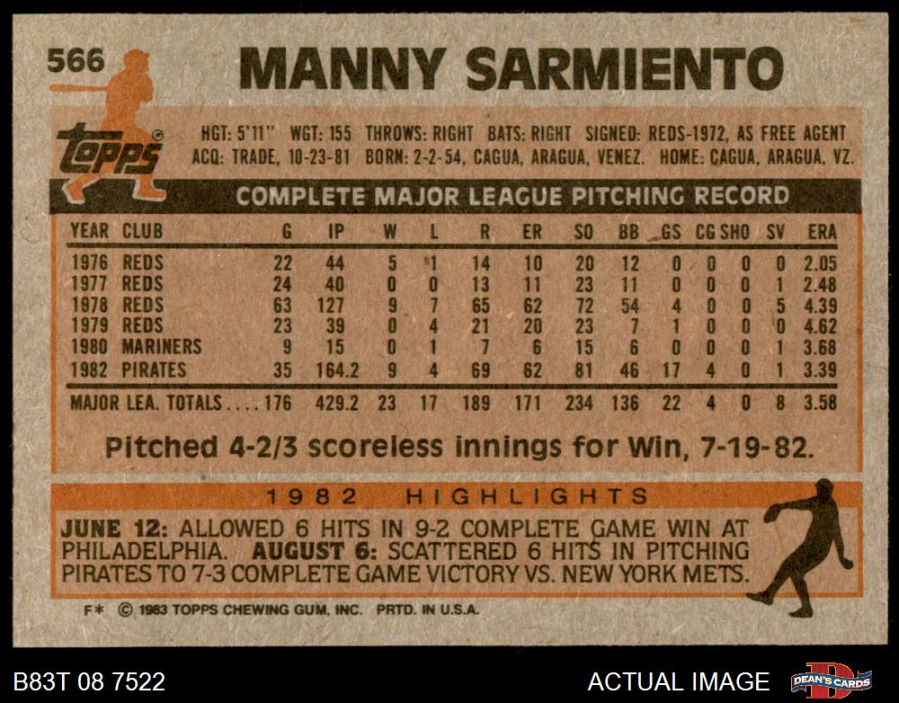 1983 Topps #566 Manny Sarmiento 8 - NM/MT