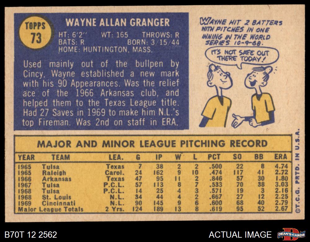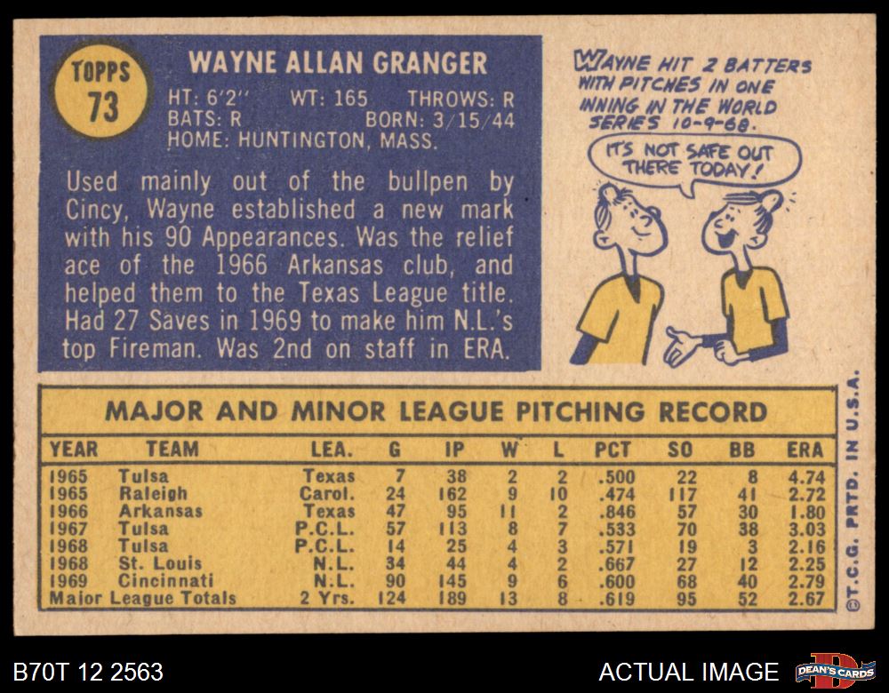 1970 Topps #73 Wayne Granger 8 - NM/MT