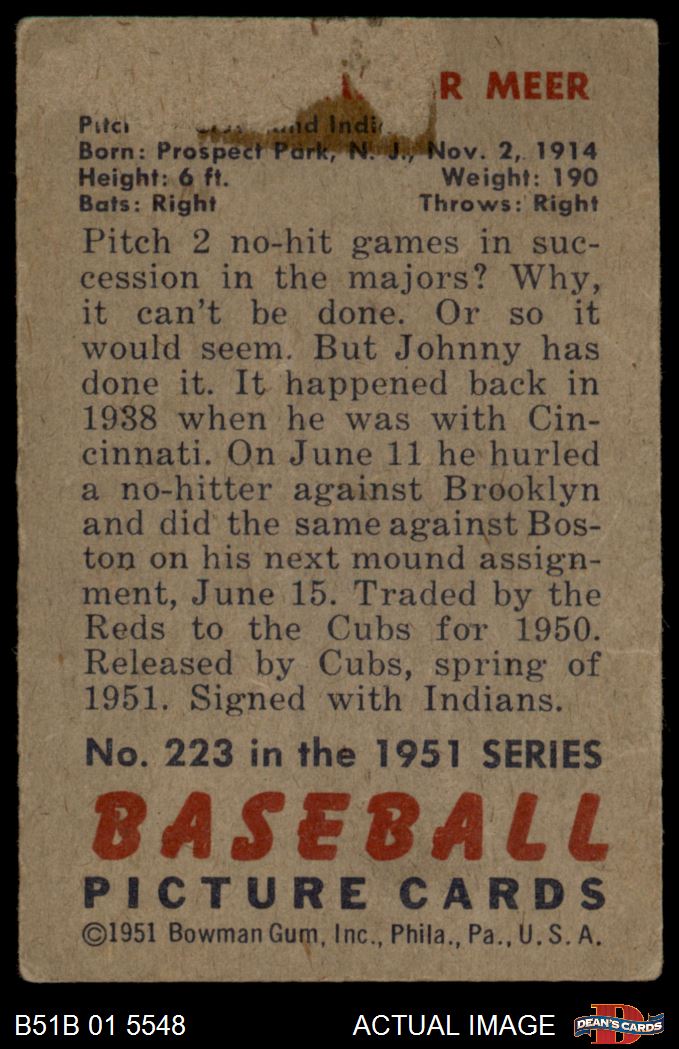 1951 Bowman #223 Johnny Vander Meer 1 - POOR