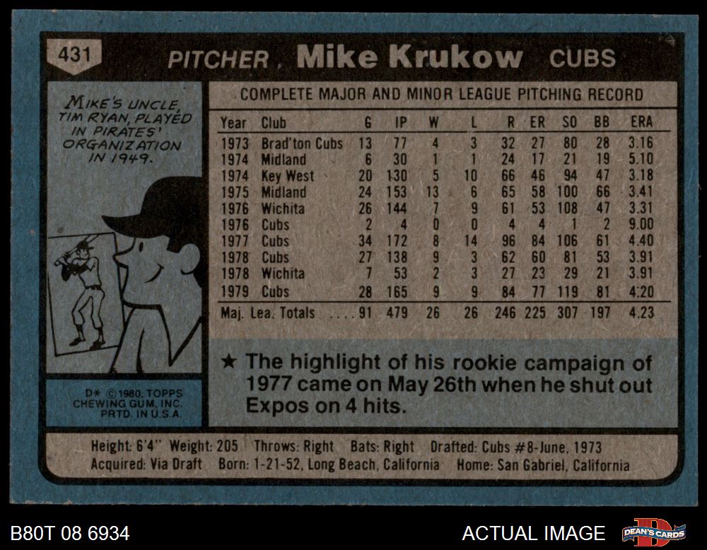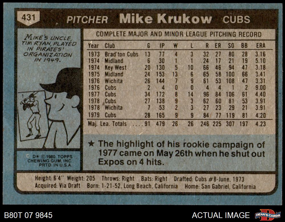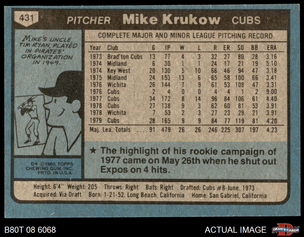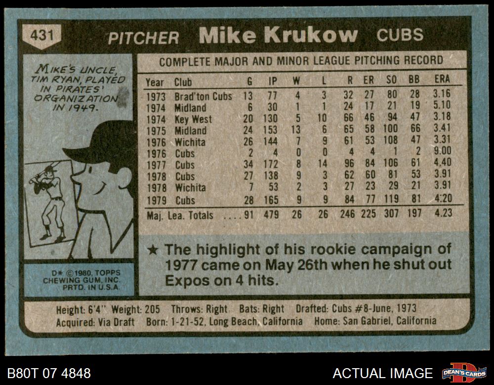 1980 Topps #431 Mike Krukow 7 - NM