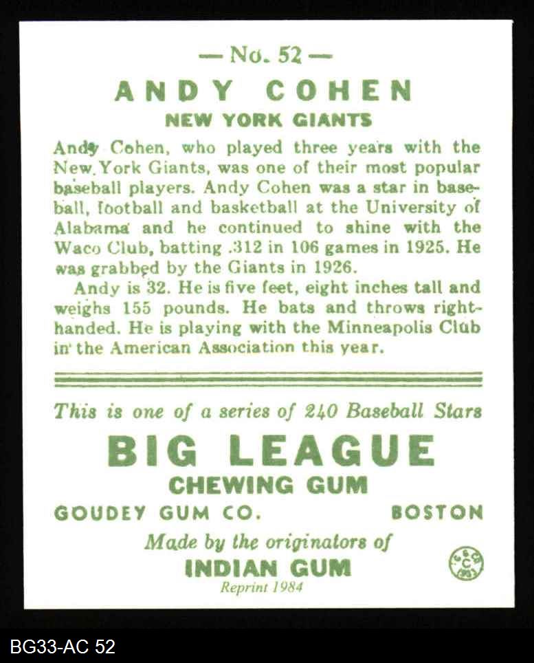 1933 Goudey Reprint (1,589 available)1933 Goudey Reprint Giants (211 available)