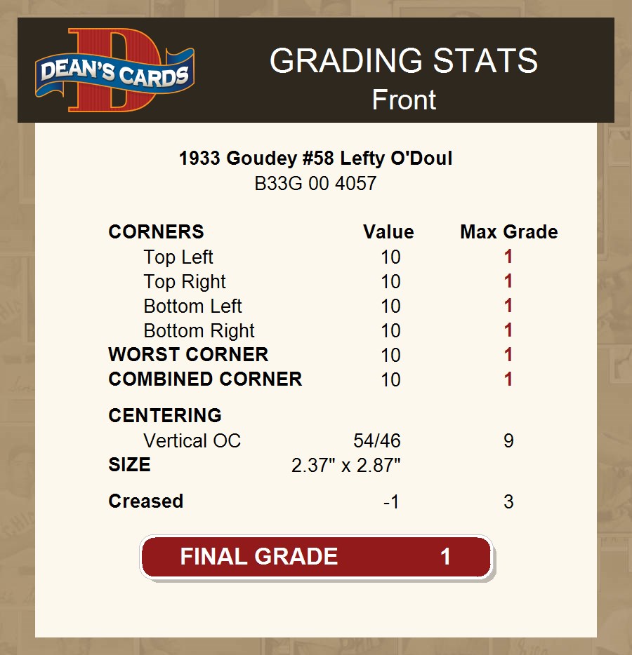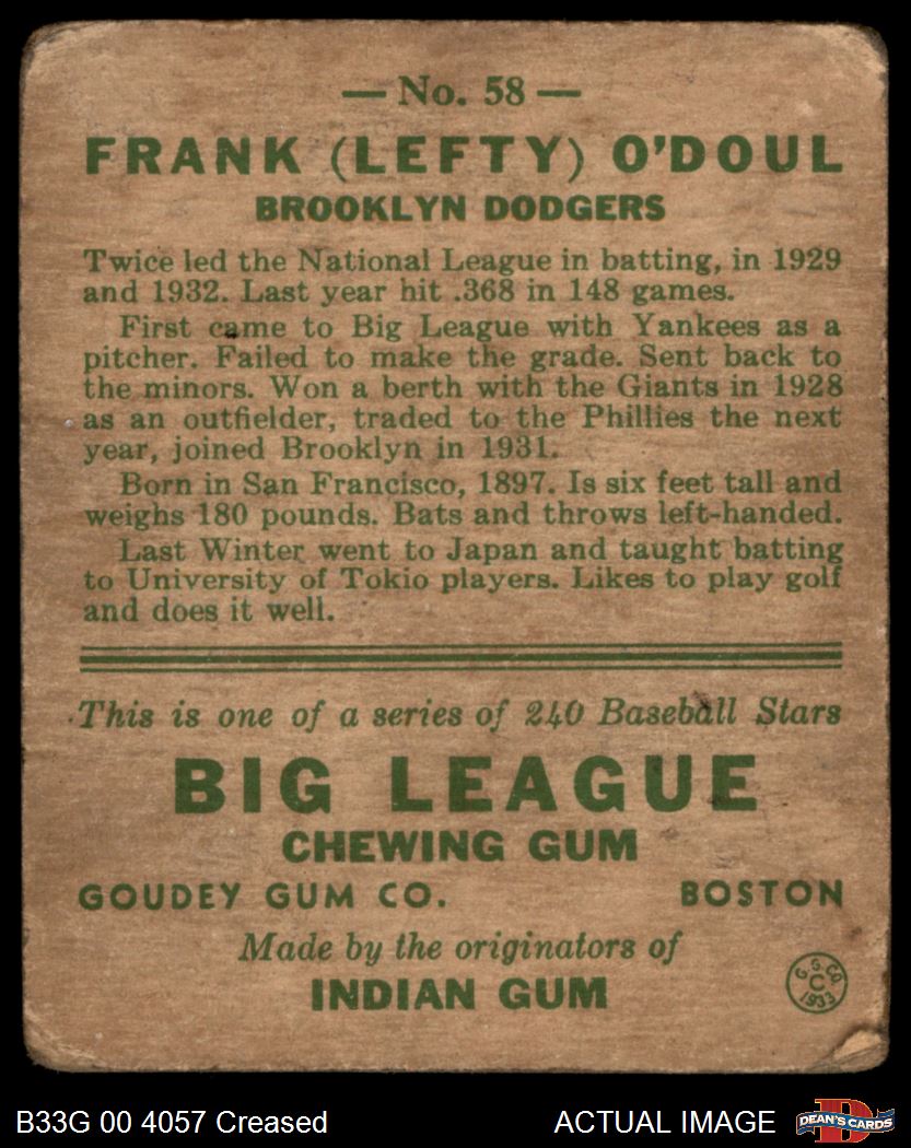 1933 Goudey #58 Lefty O'Doul 1 - POOR