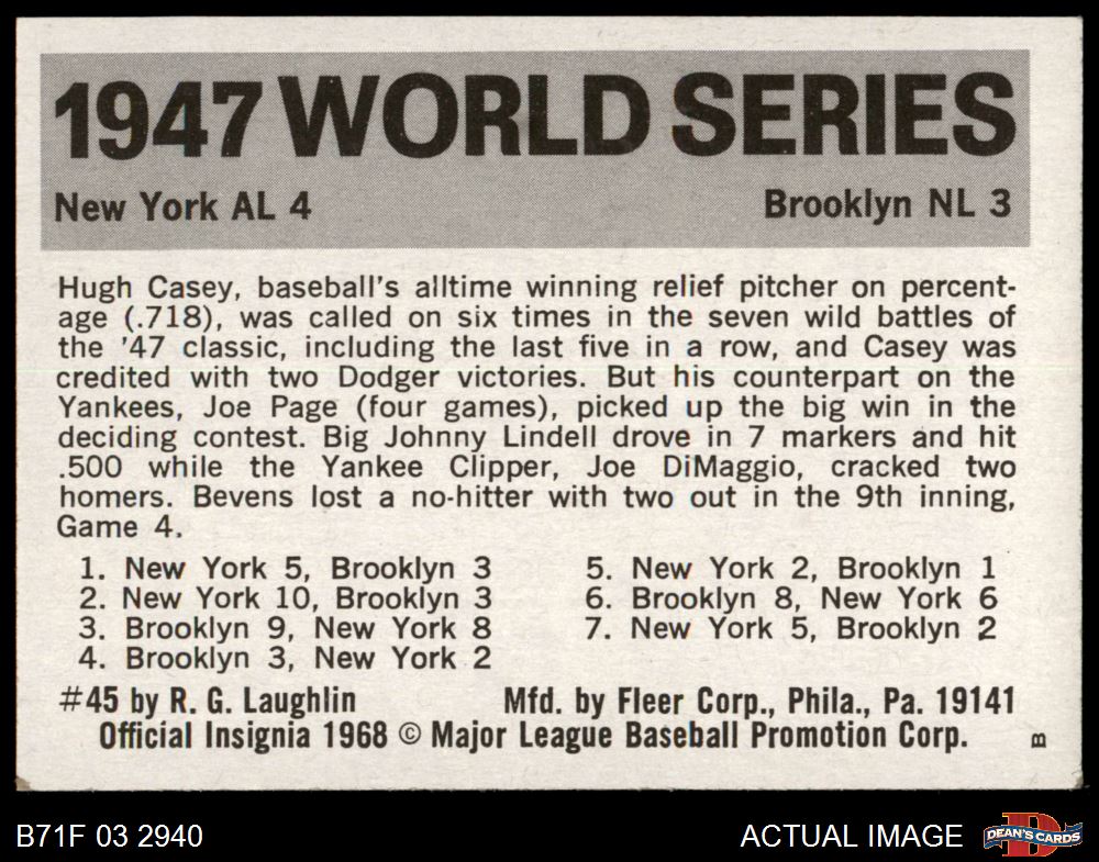 1971 Fleer World Series #45 1947 Yankees / Dodgers 6 - EX/MT