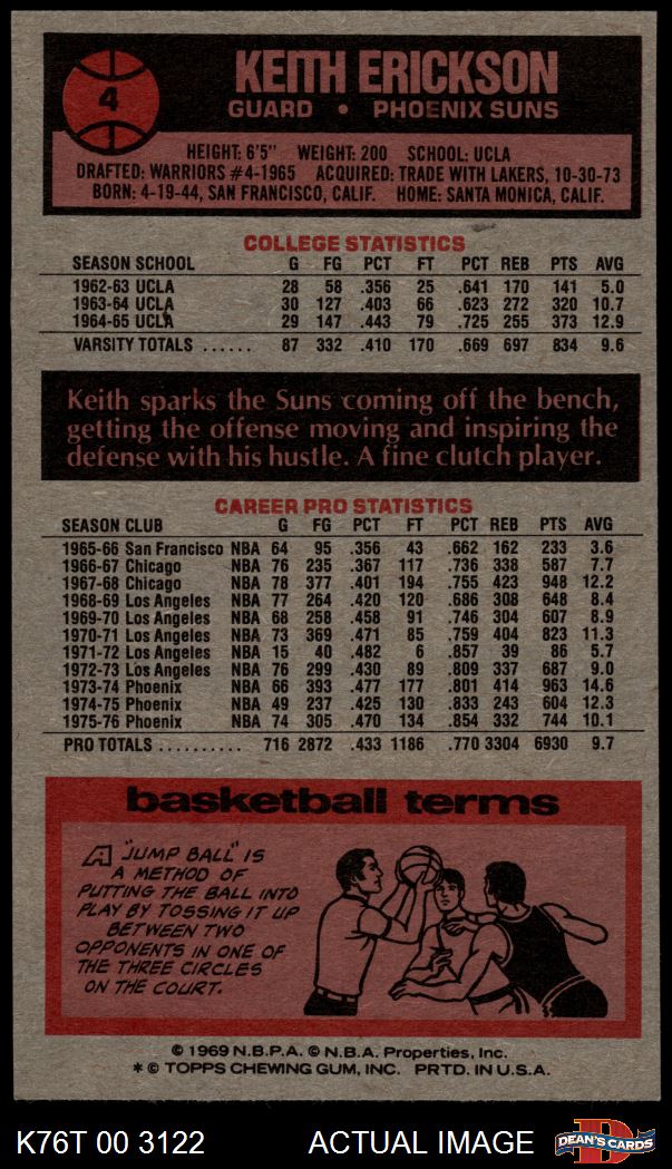1976 Topps #4 Keith Erickson 7 - NM