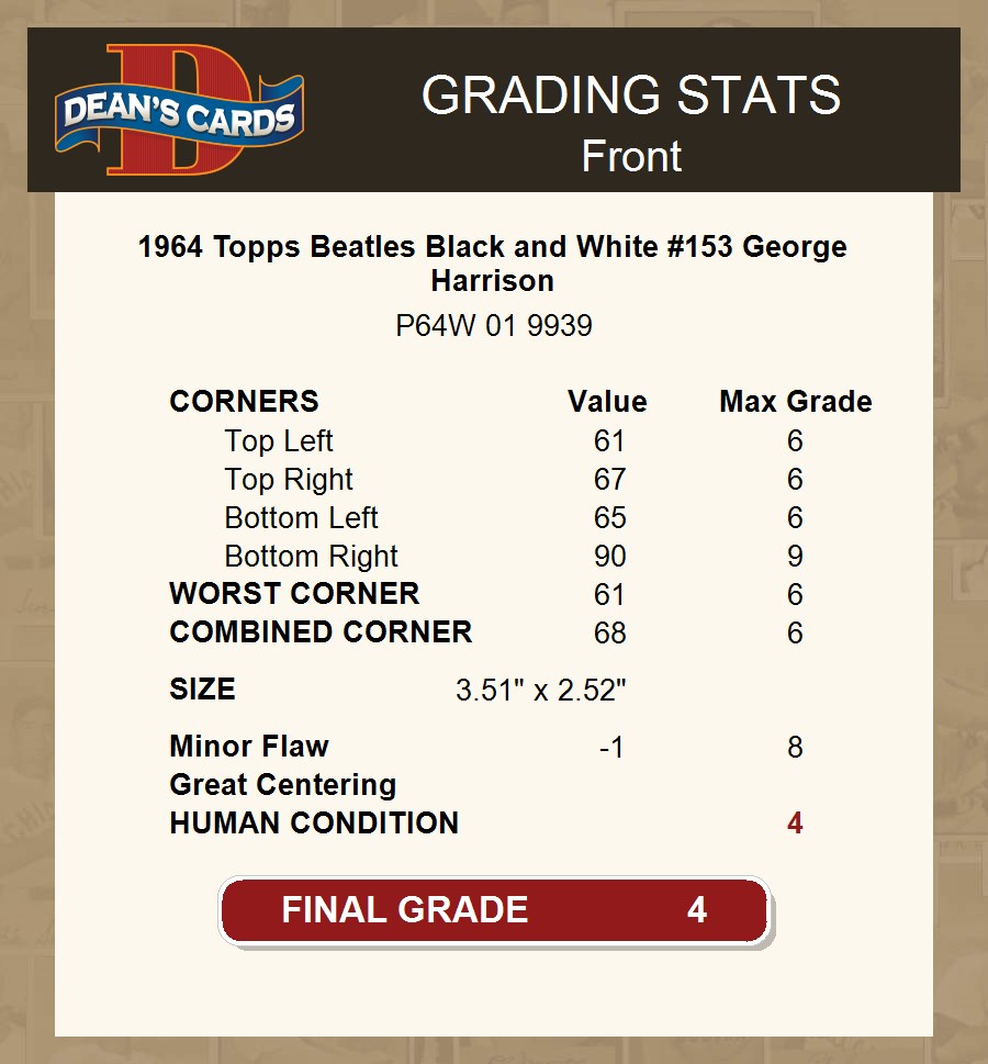 1964 Topps Beatles Black and White #153 George Harrison 4 - VG/EX