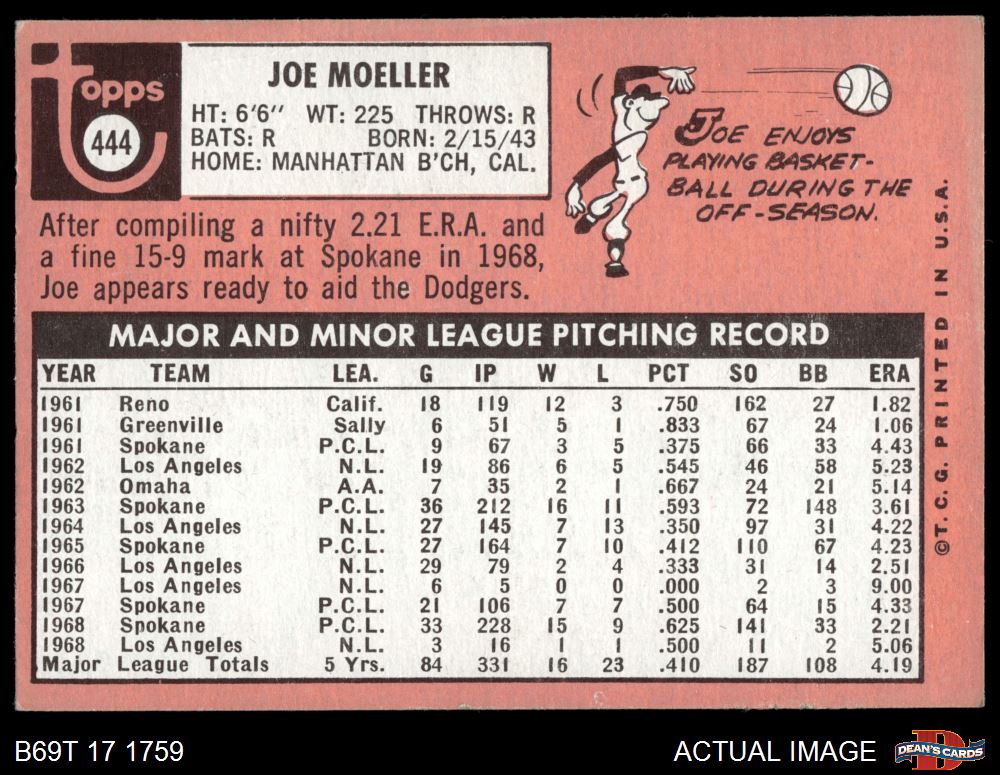 1969 Topps #444 YN Joe Moeller 4 - VG/EX