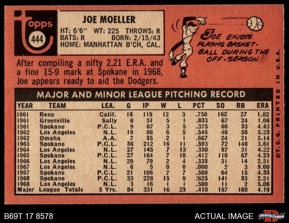 1969 Topps #444 YN Joe Moeller 5 - EX