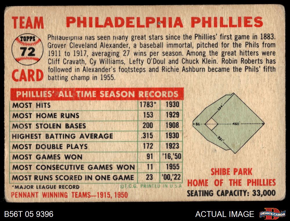 1956 Topps #72 CEN Phillies Team 1 - POOR