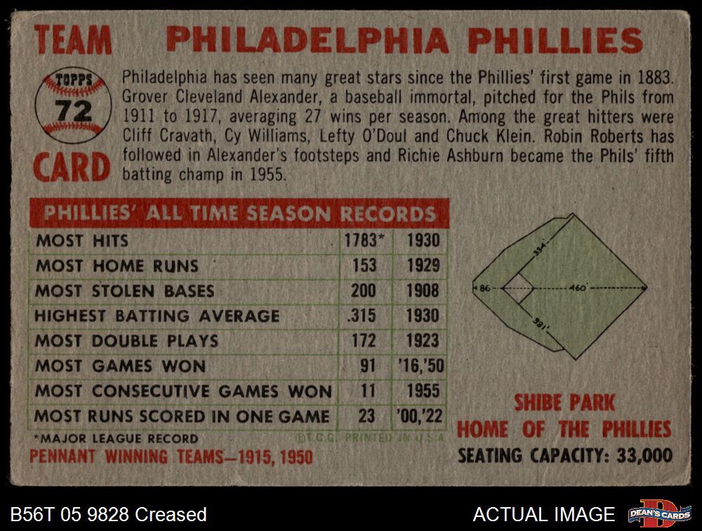 1956 Topps #72 CEN Phillies Team