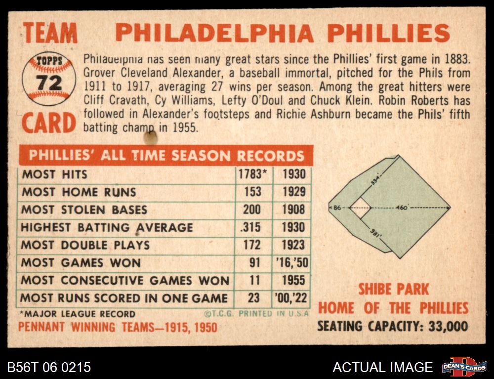 1956 Topps #72 CEN Phillies Team 4 - VG/EX