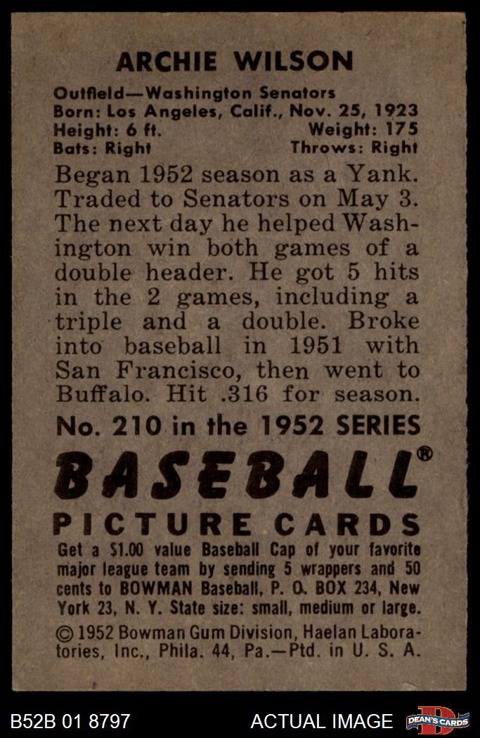 1952 Bowman #210 Archie Wilson