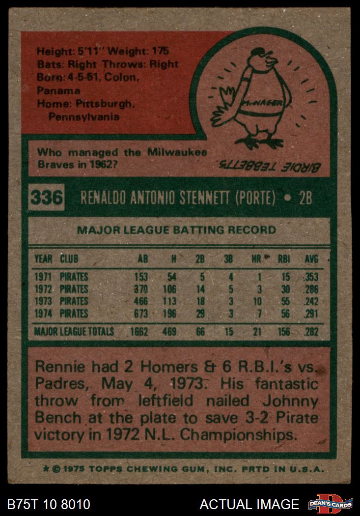 1975 Topps #336 Rennie Stennett 7.5 - NM+