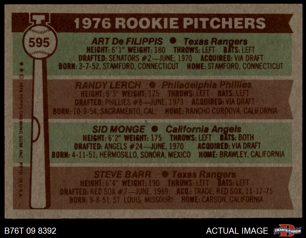 1976 Topps #595 - Steve Barr / Art DeFilippis / Randy Lerch / Sid Monge Rookie Pitchers 5.5 - EX+