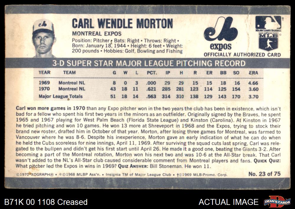 1971 Kellogg's #23 Carl Morton 3 - VG