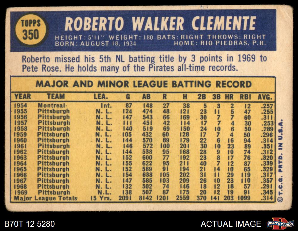 1970 Topps #350 Roberto Clemente 1 - POOR