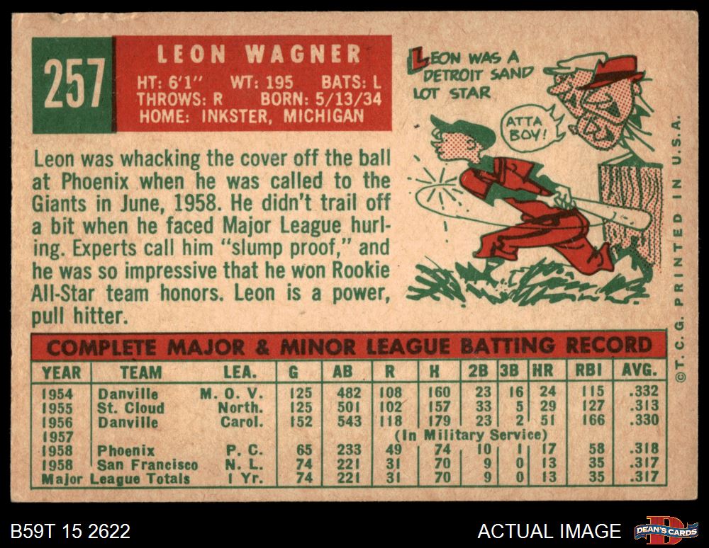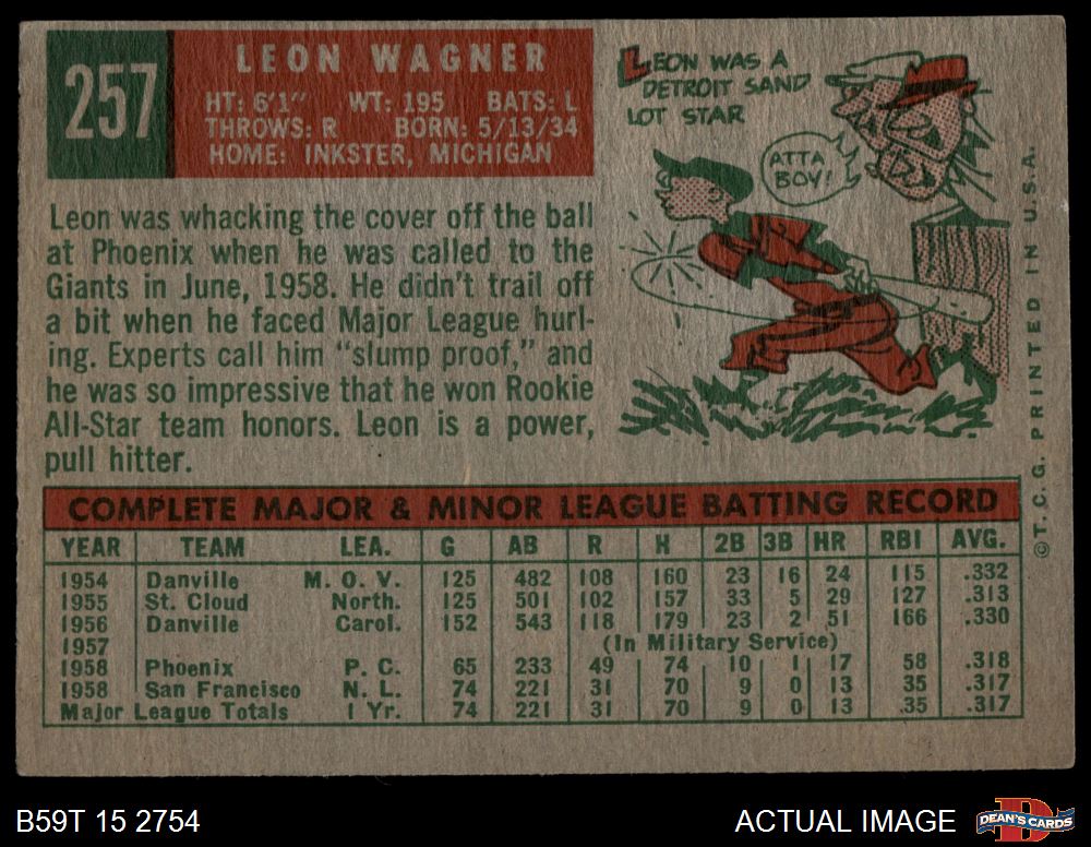 1959 Topps #257 Leon Wagner 2 - GOOD