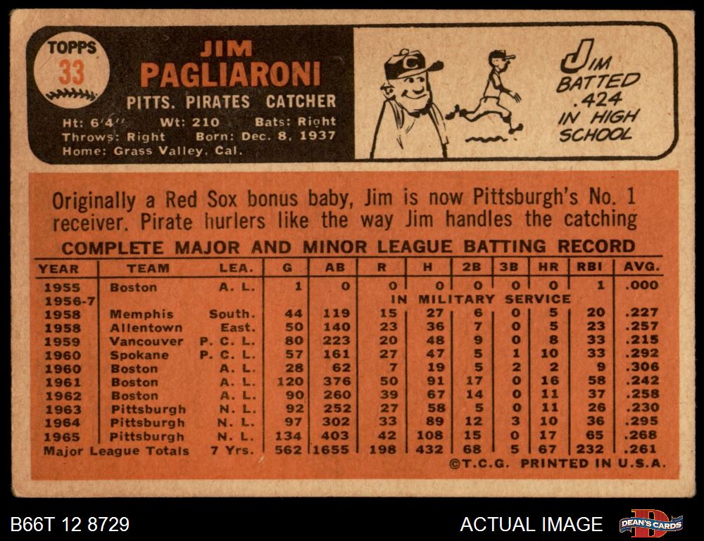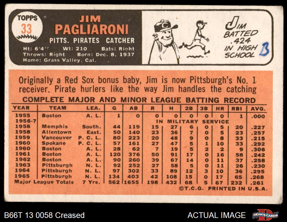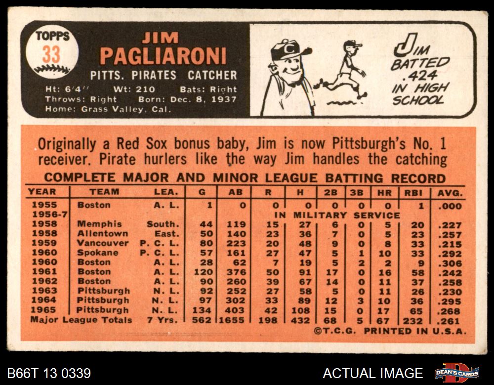 1966 Topps #33 Jim Pagliaroni 2 - GOOD