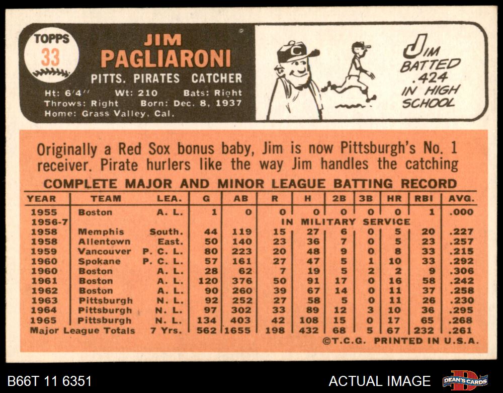 1966 Topps #33 Jim Pagliaroni 6 - EX/MT
