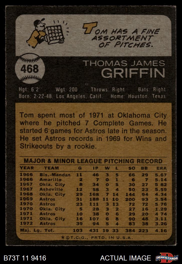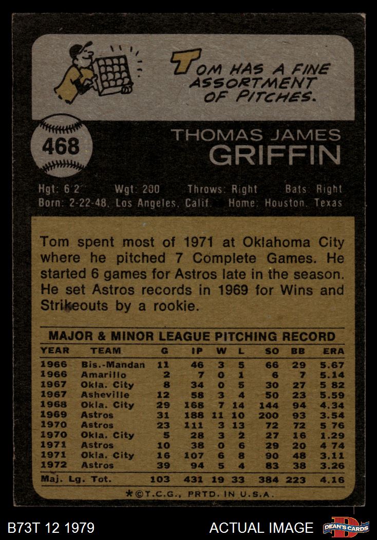 1973 Topps #468 Tom Griffin 3 - VG