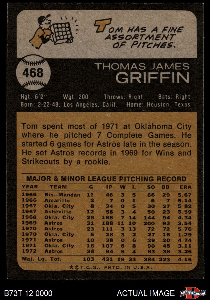 1973 Topps #468 Tom Griffin 6 - EX/MT