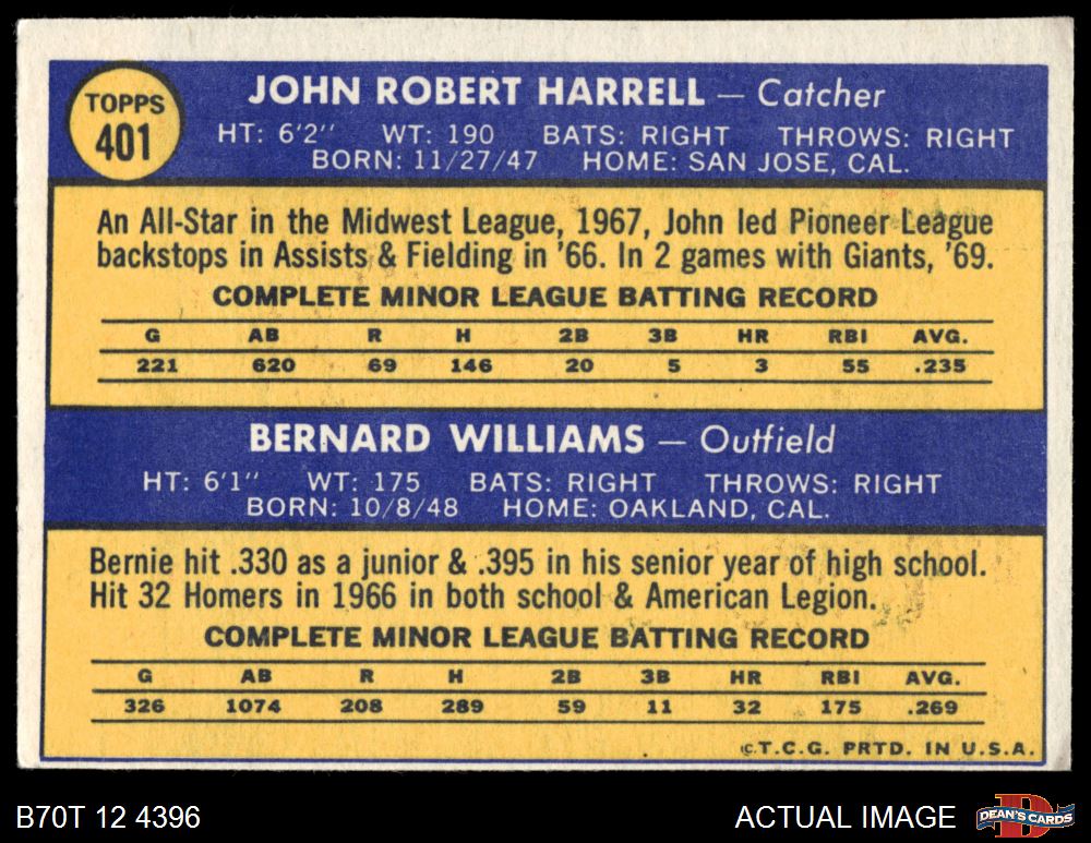 1970 Topps #401 - Bernie Williams / John Harrell Giants Rookies 4 - VG/EX