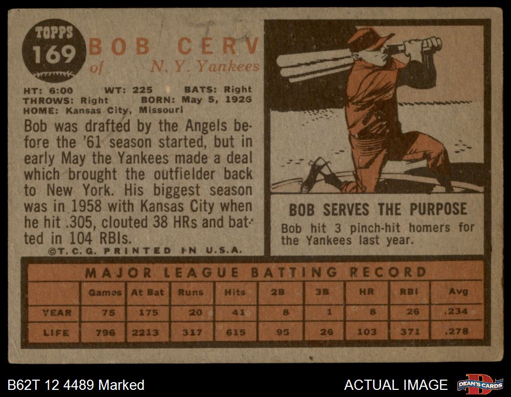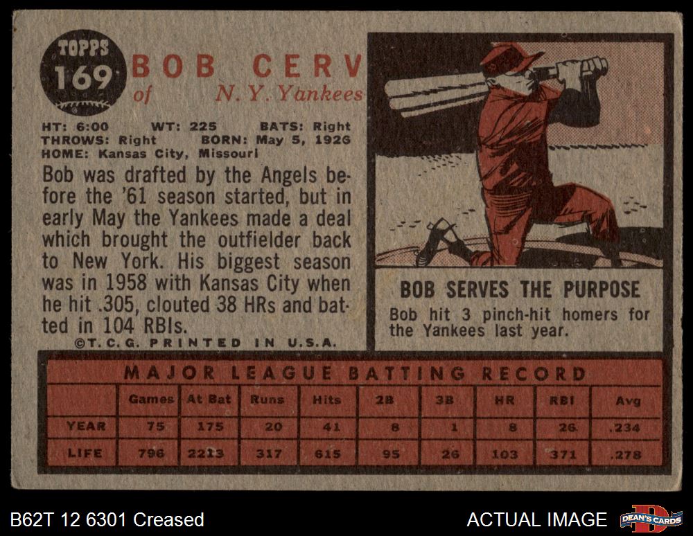 1962 Topps #169 NRM Bob Cerv 1.5 - FAIR