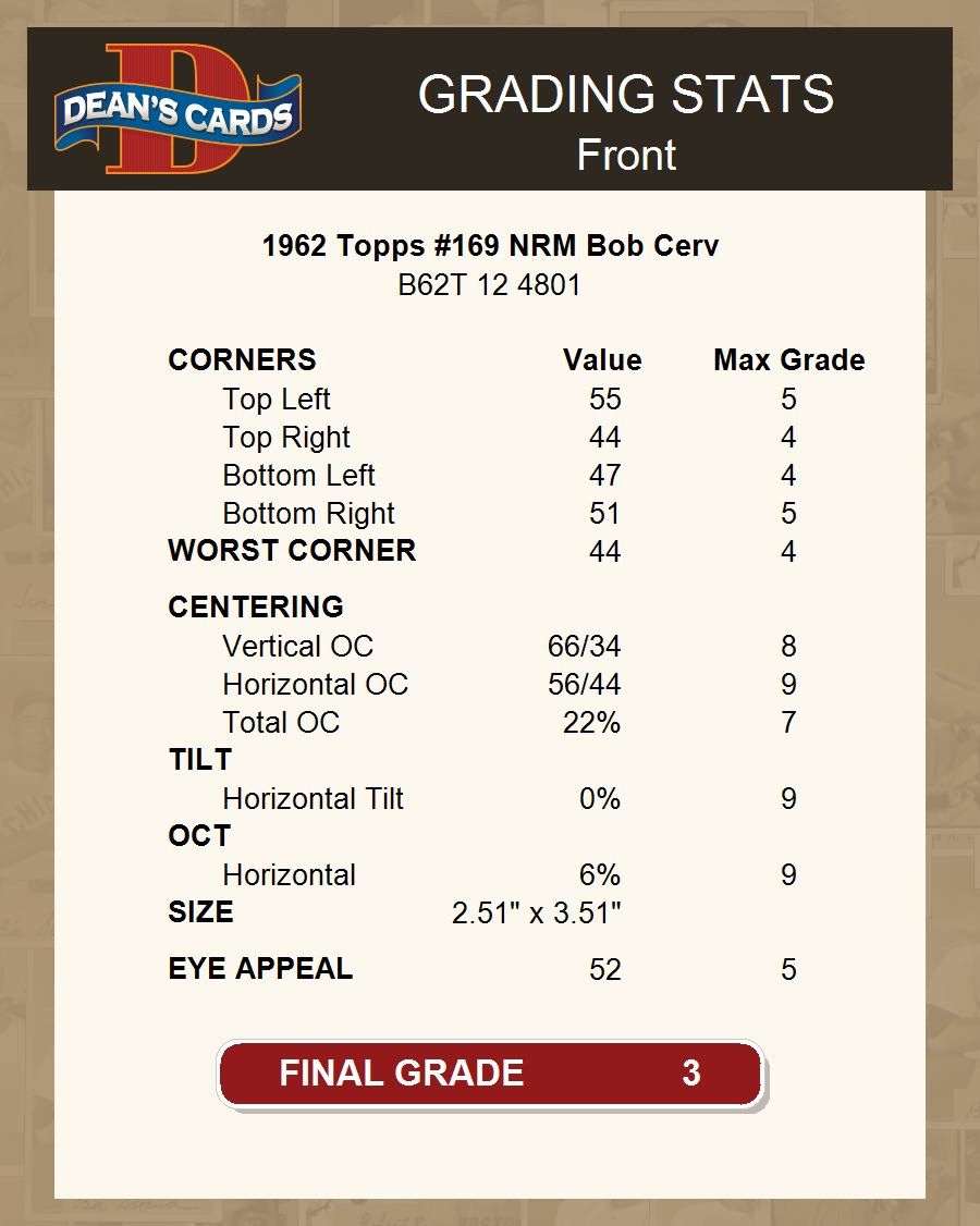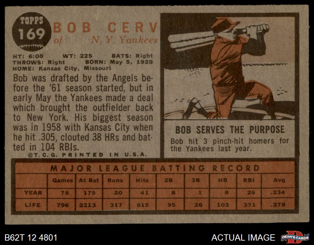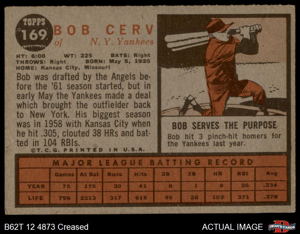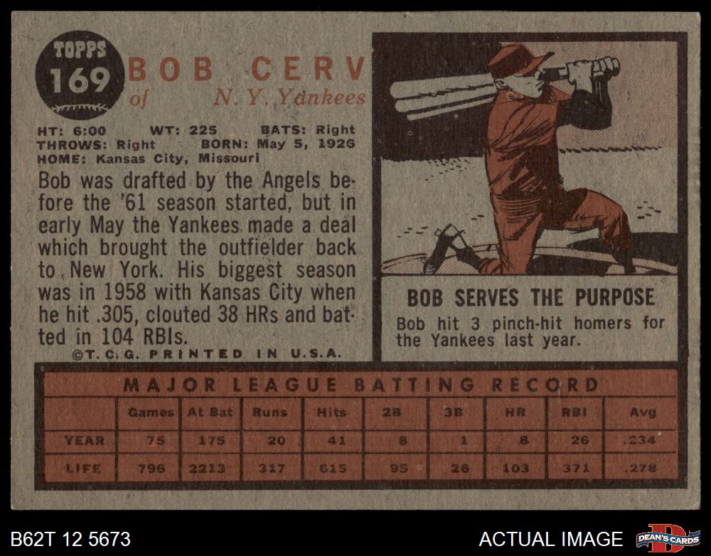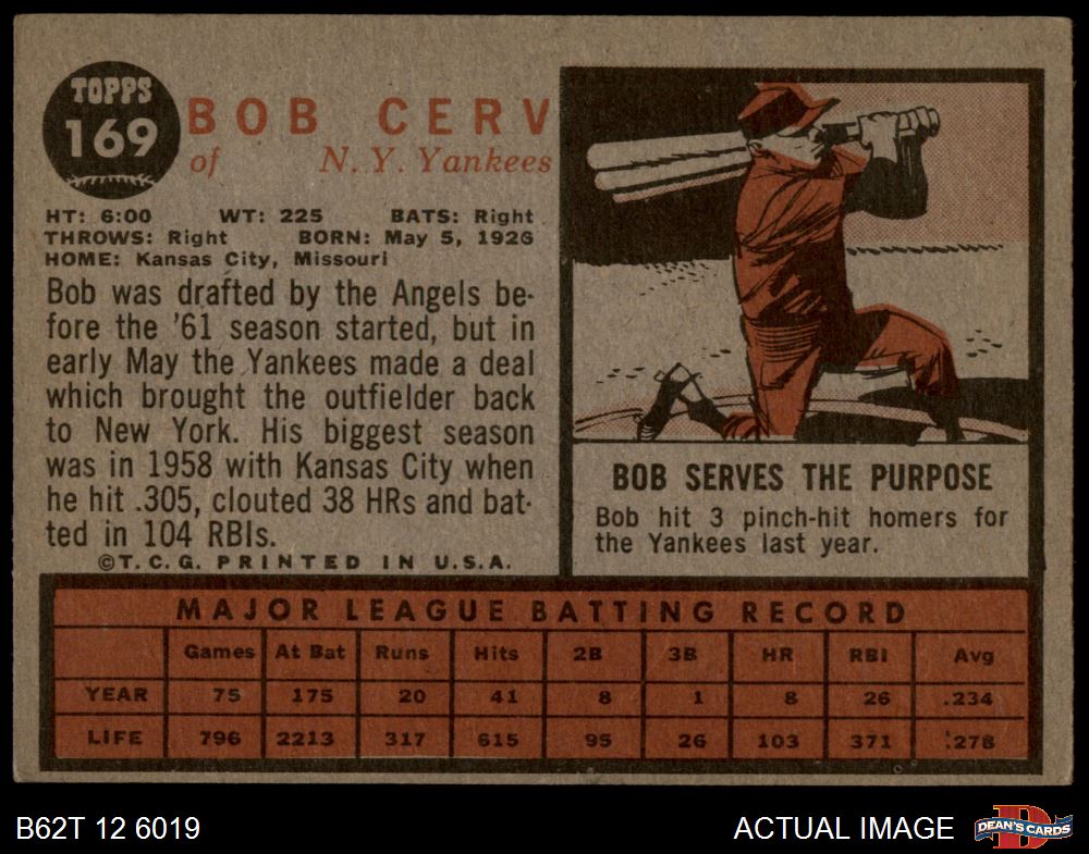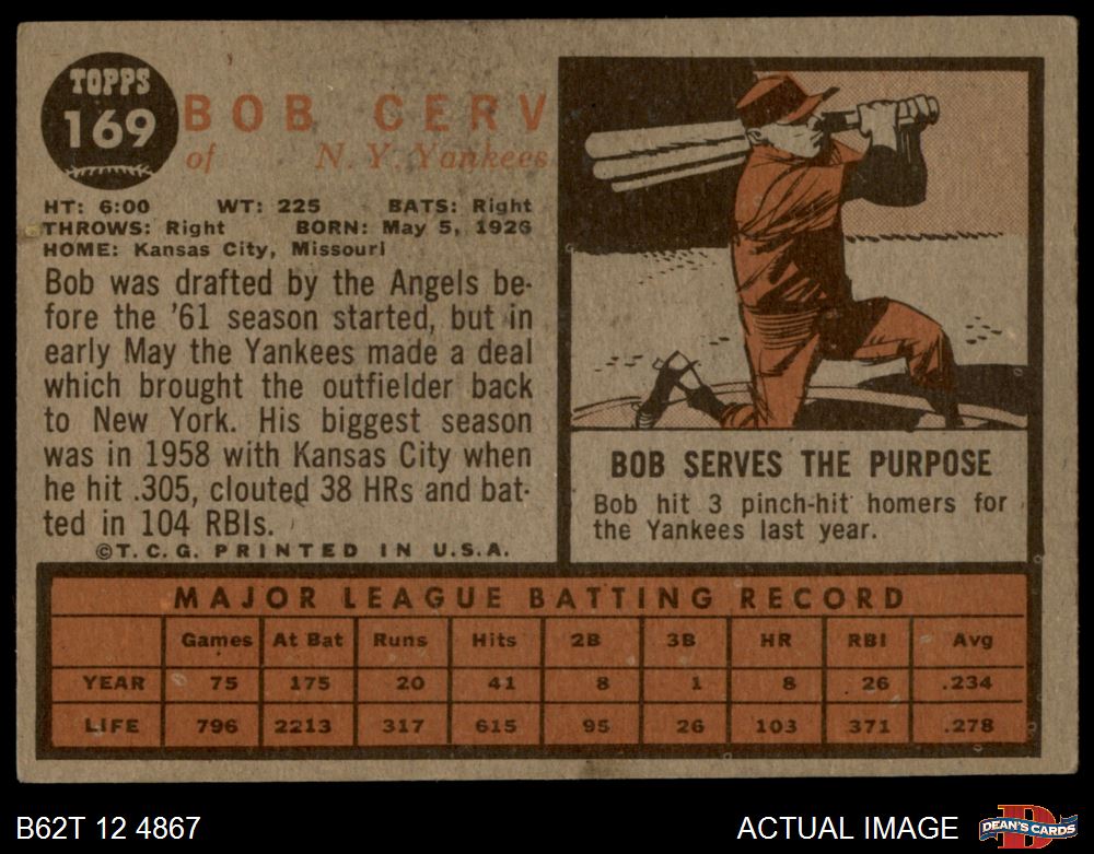 1962 Topps #169 NRM Bob Cerv 3 - VG