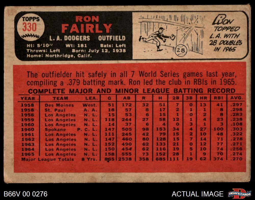 1966 Topps Venezuelan #330 Ron Fairly 2 - GOOD