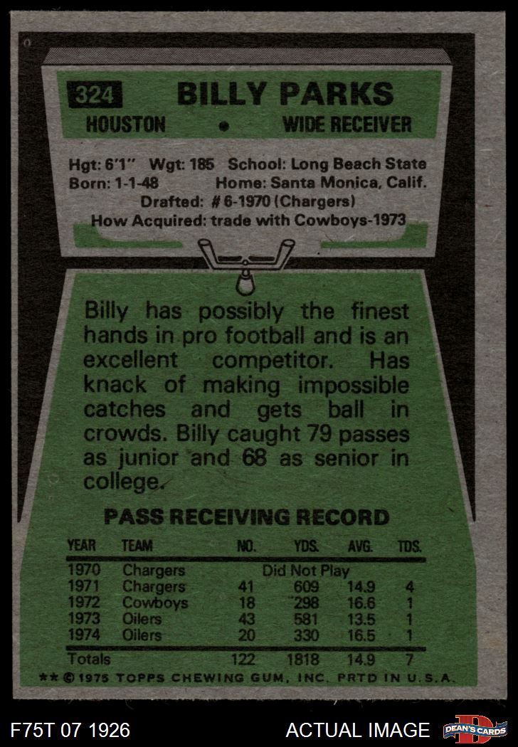 1975 Topps #324 Billy Parks