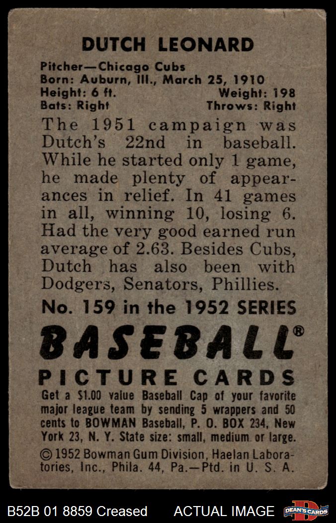1952 Bowman #159 Dutch Leonard 2 - GOOD