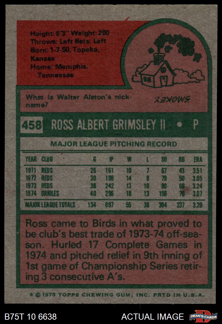 1975 Topps #458 Ross Grimsley 3 - VG