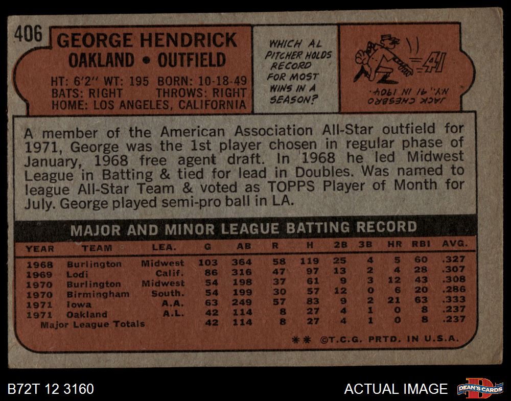 1972 Topps #406 George Hendrick 1.5 - FAIR