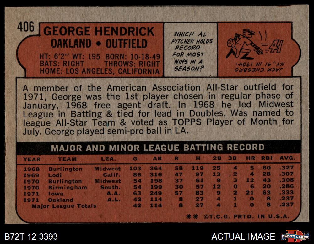 1972 Topps #406 George Hendrick 3 - VG