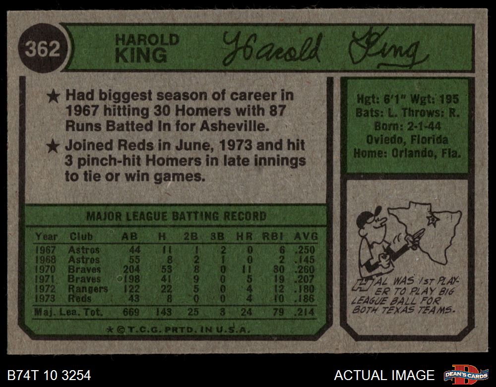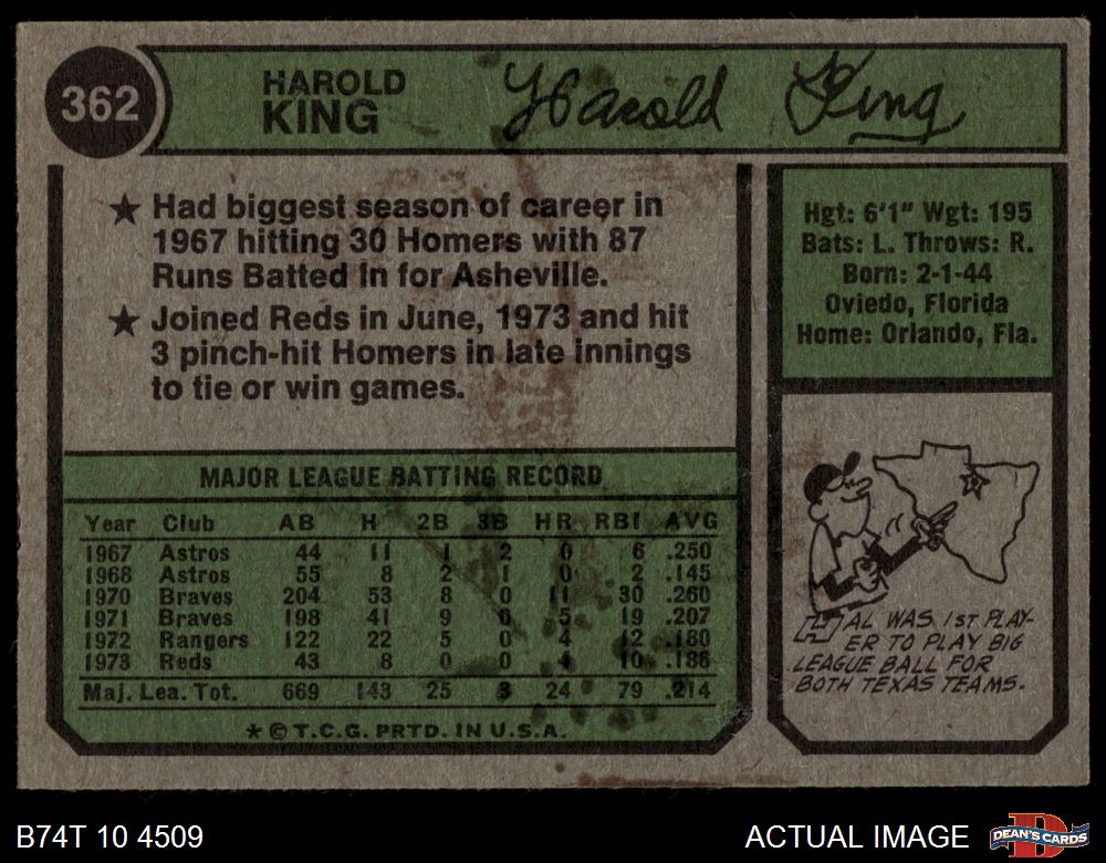 1974 Topps #362 Hal King