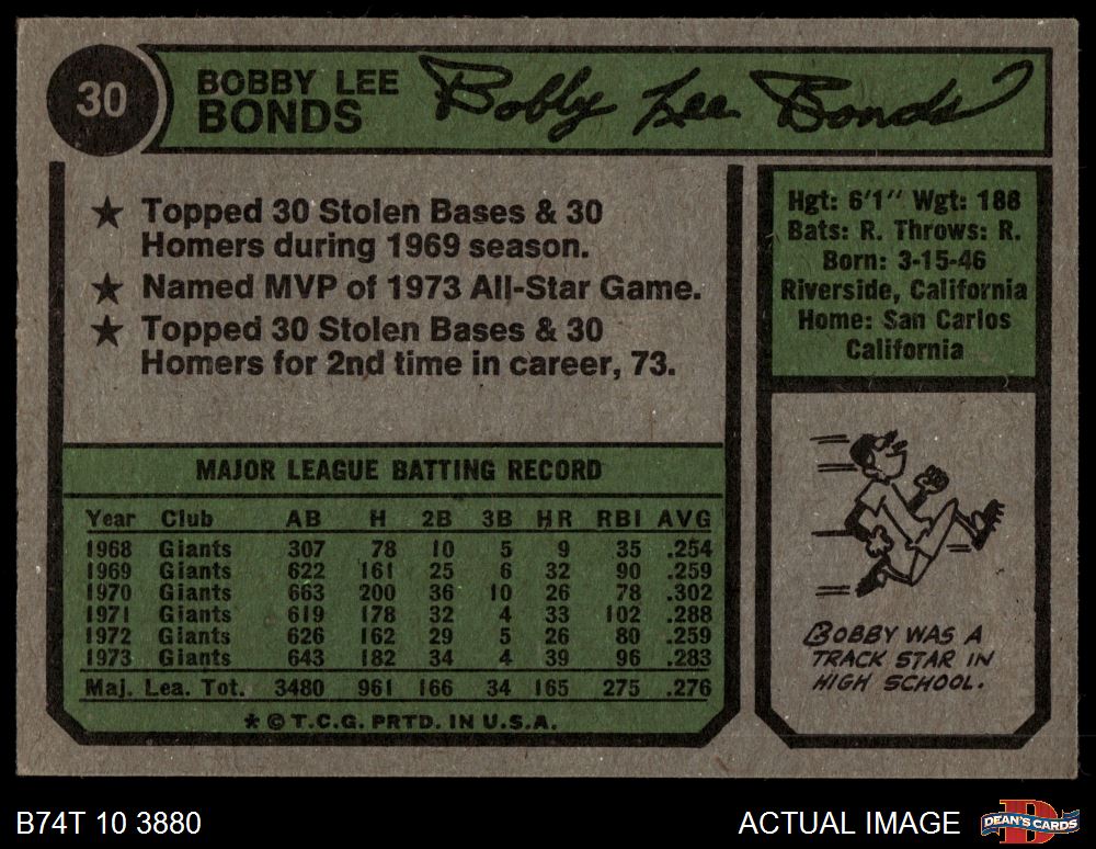 1974 Topps #30 Bobby Bonds 5.5 - EX+