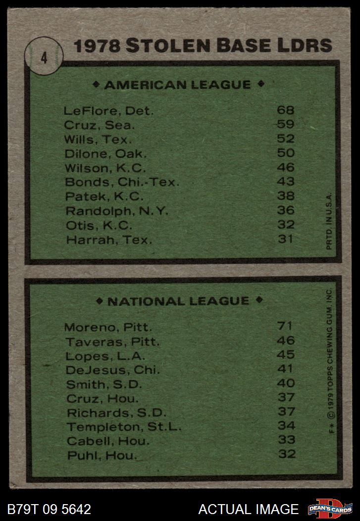 1979 Topps #4 - Ron LeFlore / Omar Moreno SB Leaders 3 - VG