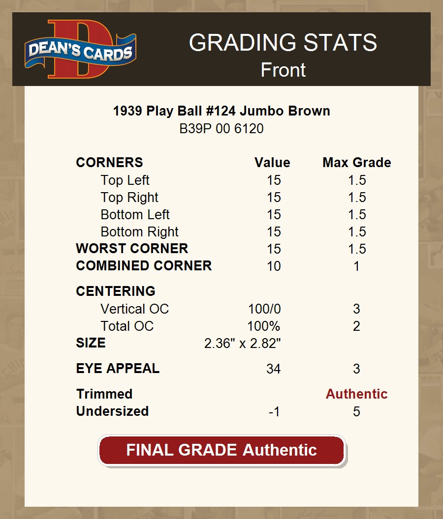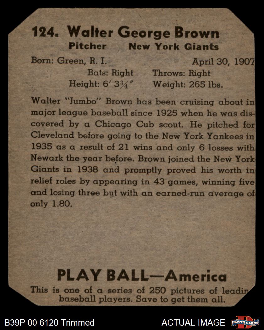 1939 Play Ball #124 Jumbo Brown AUTHENTIC