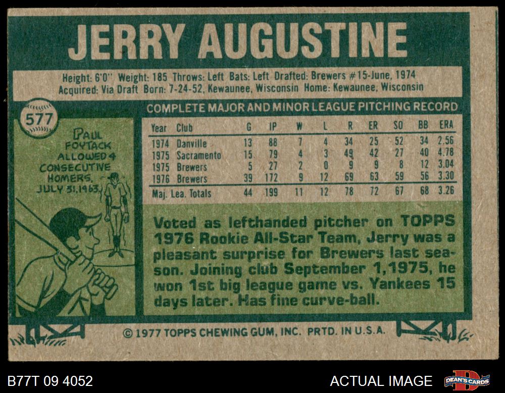 1977 Topps #577 Jerry Augustine 3 - VG