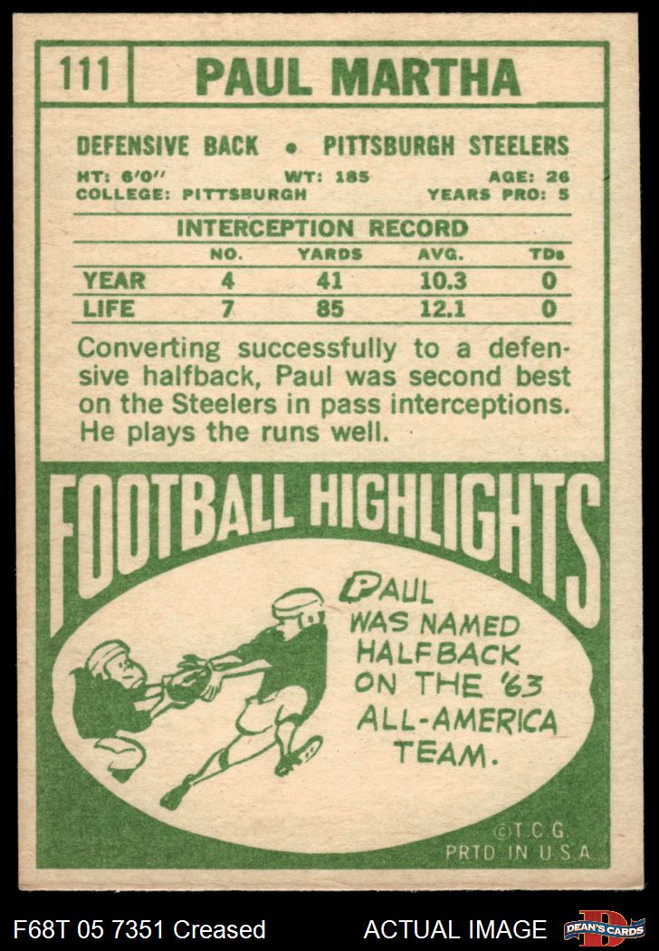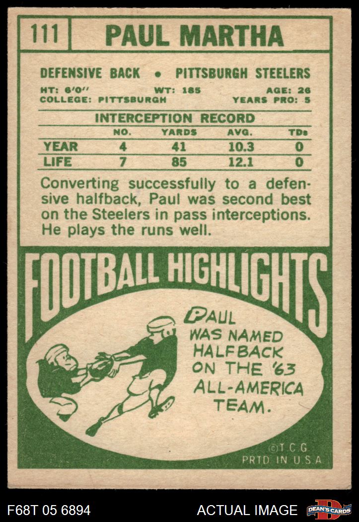 1968 Topps Football Cards (2,556 available)1968 Topps Steelers (79 available)