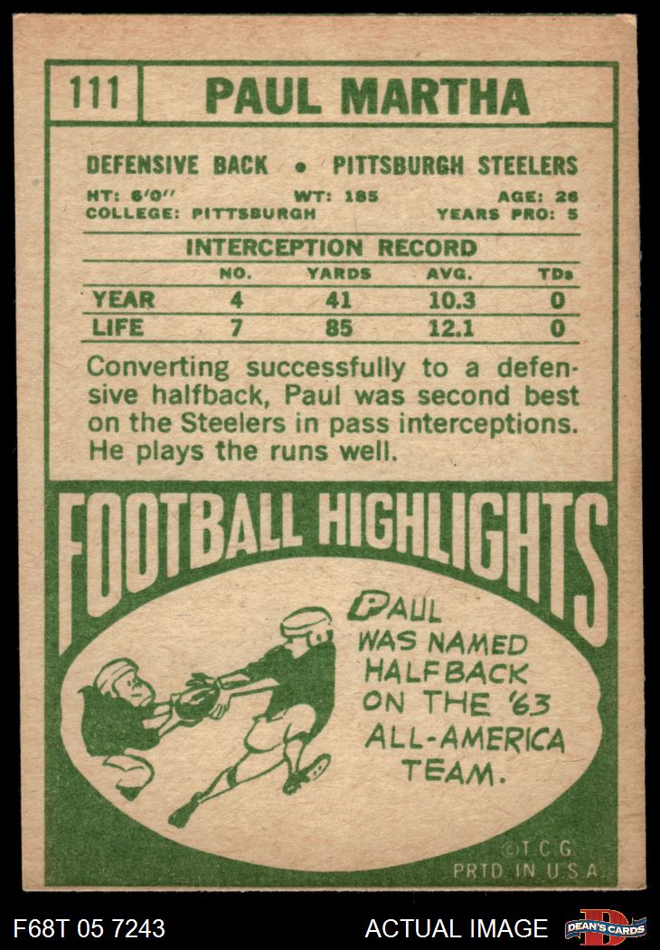 1968 Topps #111 Paul Martha 4 - VG/EX