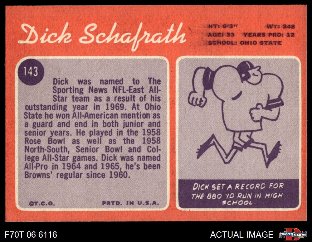 1970 Topps #143 Dick Schafrath 7.5 - NM+
