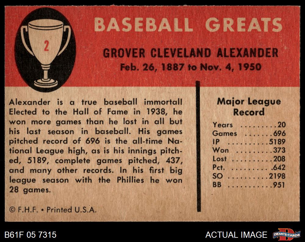 1961 Fleer #2 Grover Alexander 2.5 - GD+