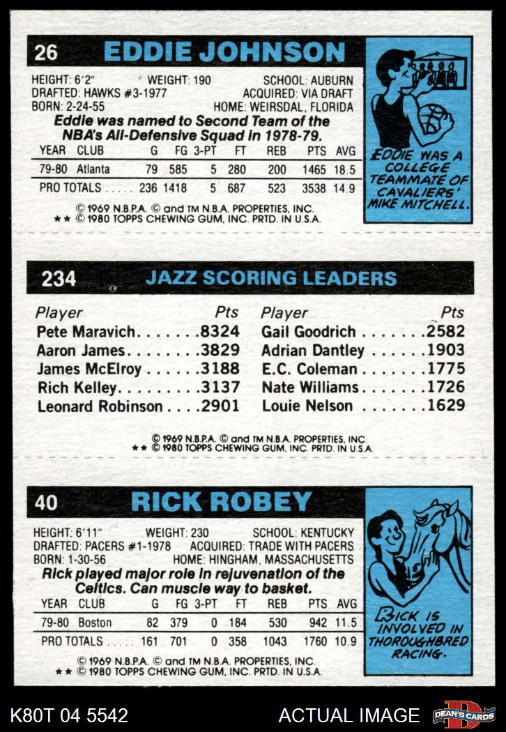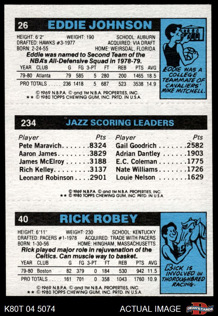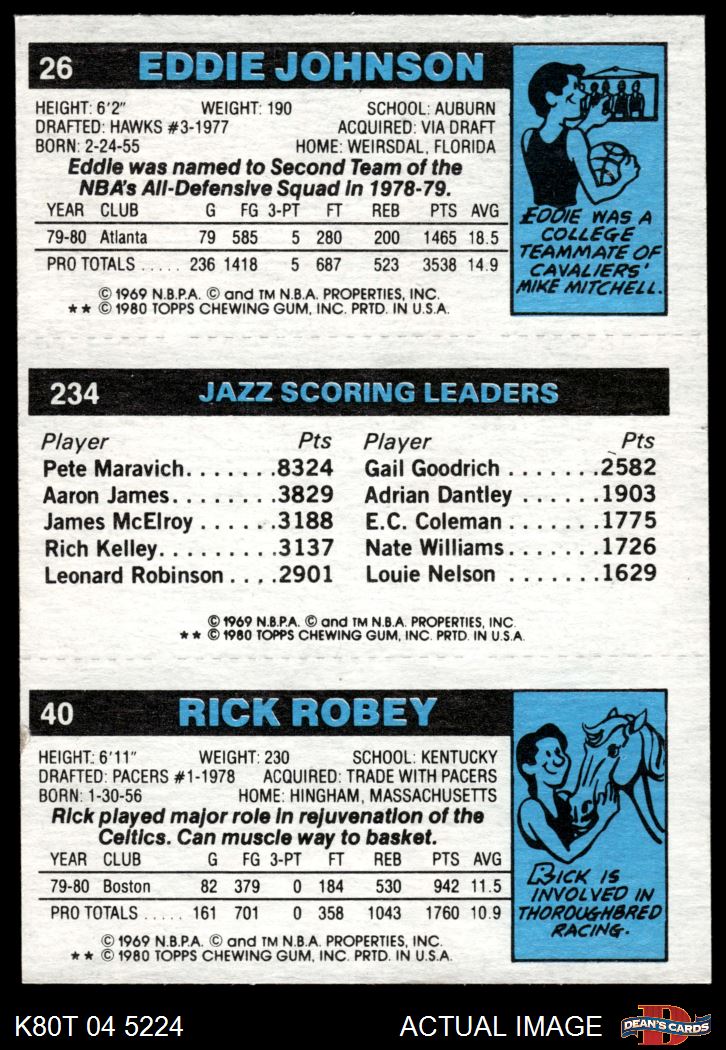 1980 Topps - Rick Robey / Adrian Dantley / Eddie Johnson 40 / 234 / 26 7 - NM